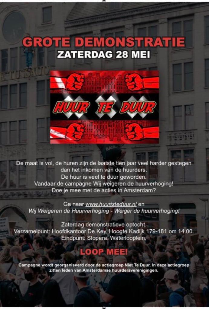 Georganiseerd door de actiegroep Niet Te Duur. In deze actiegroep zitten leden van Amsterdamse huurdersverenigingen.
