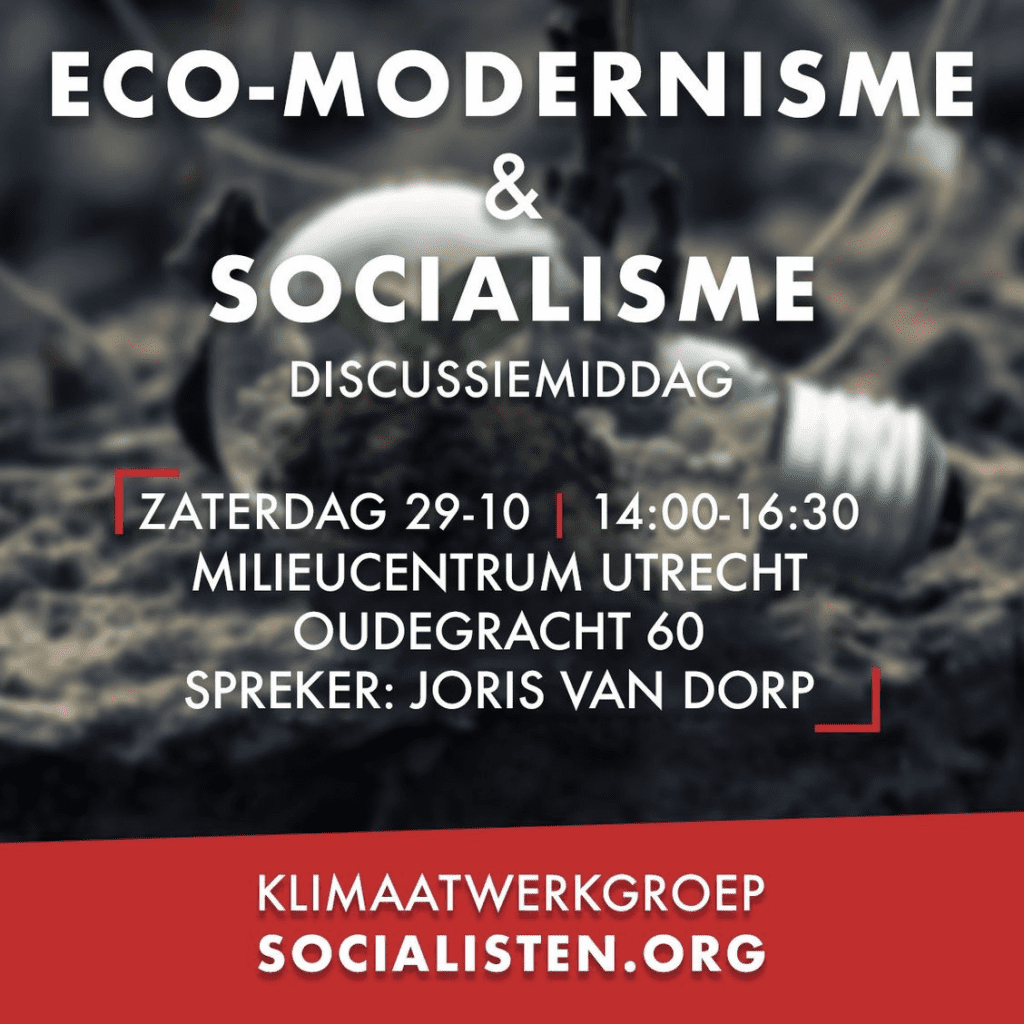 Op zaterdag 29 oktober organiseert het klimaatnetwerk van de Socialisten een tweede discussiemiddag en je bent van harte uitgenodigd! Deze keer is het onderwerp ecomodernisme en hebben we Joris van Dorp van het RePlanet netwerk uitgenodigd om ons bij te praten wat dat is en waarom we dat als socialisten serieus moeten nemen.