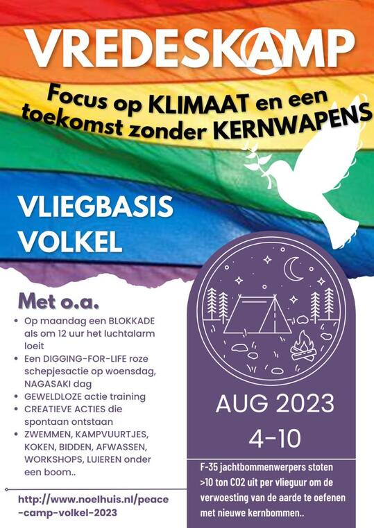 Van 4 tot 10 augustus 2023 wordt er een vredeskamp bij de vliegbasis Volkel georganiseerd door de Catholic Worker-gemeenschap. De focus is op klimaat en op een toekomst zonder kernwapens. Zie hier.