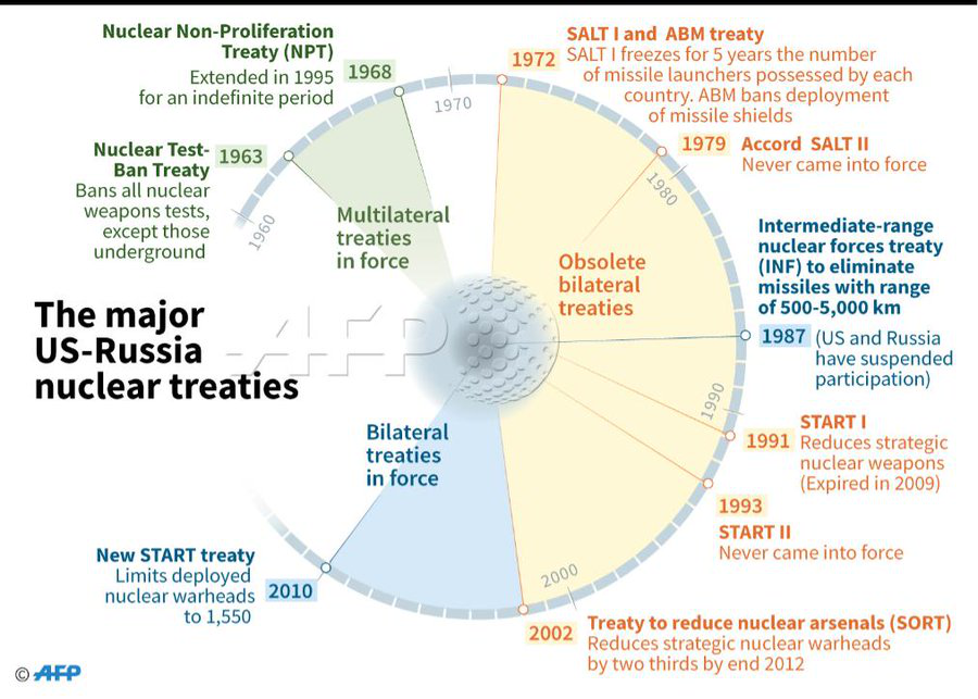 In de verslechterende sfeer van de laatste jaren beschuldigen beide landen elkaar van het schenden van verdragen en kiezen er daarna voor deze op te zeggen of niet te verlengen. Zo maakte de VS een einde aan het anti-ballistische rakettenverdrag, mede om de opbouw van een raketschild in Europa mogelijk te maken, en een einde aan het Intermediate-Range Nuclear Forces-verdrag, dat het gebruik van middellangeafstandsraketten verbood. Die afbraak van verdragen heeft grote gevolgen voor Europa, dat als potentieel nucleair slagveld tussen Rusland en de VS ligt, maar heeft niet geleid tot meer Europese inzet voor kernontwapening.